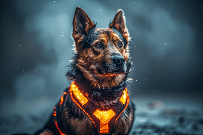 Secure, padded harness with night visibility.